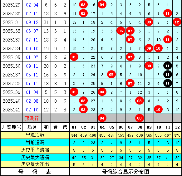 后区判断:上期后区奖号为02和10,开出热码+温码组合。最近十期后区开出11个热码、6个温码和3个冷码,本期展望奖号温雅热码+热码组合,参考两码04、08。